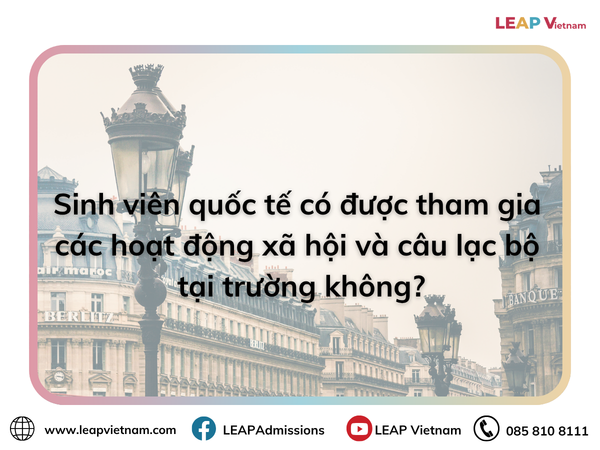 Du học không chỉ dừng lại ở lớp học. Những hoạt động ngoại khóa mang lại cơ hội phát triển bản thân toàn diện, hình thành tư duy độc lập và khẳng định cá tính trong môi trường quốc tế. Với hệ thống hỗ trợ mạnh mẽ và môi trường học thuật đa văn hóa, Pháp là một lựa chọn lý tưởng cho những ai muốn theo đuổi chương trình du học Pháp bằng tiếng Anh.