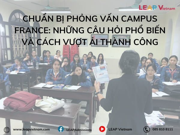 Phỏng vấn Campus France không nhằm để “hỏi khó” bạn, mà là để đánh giá động lực, khả năng thích nghi và mục tiêu rõ ràng của bạn khi du học Pháp. Hãy chuẩn bị kỹ càng từ nội dung trình bày, tài chính, kế hoạch học tập và nghề nghiệp sau tốt nghiệp. Sự tự tin, rõ ràng và nghiêm túc sẽ là chìa khóa giúp bạn vượt qua phỏng vấn một cách suôn sẻ.