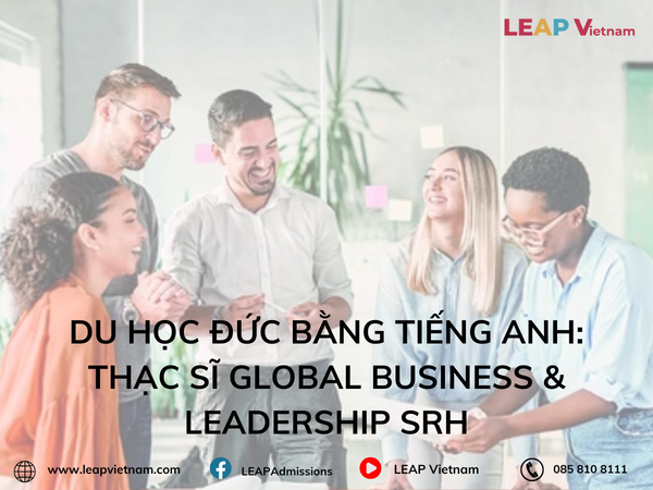 Nếu bạn đang tìm một chương trình thạc sĩ quốc tế, học bằng tiếng Anh, trang bị kiến thức quản lý quốc tế, kỹ năng lãnh đạo, marketing, tài chính và cơ hội thực tập / trải nghiệm thực tế — và mong muốn Du học Đức bằng tiếng anh — thì Global Business and Leadership tại SRH University là lựa chọn rất phù hợp. Với lộ trình học rõ ràng, giảng dạy quốc tế, môi trường học đa quốc gia, bạn sẽ có nền tảng vững chắc để phát triển sự nghiệp toàn cầu, hoặc khởi nghiệp, hoặc gia nhập doanh nghiệp đa quốc gia sau tốt nghiệp.