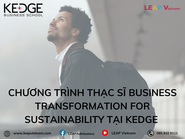 KEDGE Business School là một trường khởi nghiệp danh tiếng tại Pháp, thuộc hệ Grandes Écoles và sở hữu ba kiểm định quốc tế uy tín AACSB, EQUIS và AMBA. MSc Business Transformation for Sustainability định hướng đào tạo chuyên gia có khả năng kiến tạo chuyển đổi bền vững trong các tổ chức – đáp ứng nhu cầu ngày càng tăng về quản trị xanh trong bối cảnh cạnh tranh toàn cầu.
