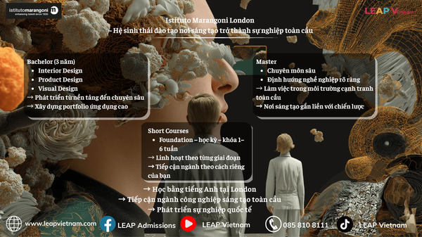 Istituto Marangoni London không chỉ là một trường học, mà là một hệ sinh thái nơi sinh viên được nuôi dưỡng, thử nghiệm và phát triển. Từ nền tảng cử nhân, chiều sâu của thạc sĩ đến sự linh hoạt của các chương trình ngắn hạn, mỗi bước trong hành trình đều hướng tới một mục tiêu chung: giúp sinh viên trở thành một phần của ngành công nghiệp sáng tạo toàn cầu.