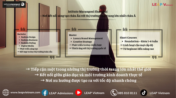 Sự hiện diện của Istituto Marangoni tại Thượng Hải là một bước đi chiến lược, nhằm kết nối di sản giáo dục thời trang châu Âu với thị trường năng động bậc nhất châu Á. Campus tại đây không chỉ là nơi đào tạo mà còn là điểm giao thoa giữa hai hệ thống sáng tạo: một bên là truyền thống lâu đời, một bên là sự đổi mới nhanh chóng.