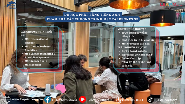 Trong bối cảnh toàn cầu hóa, nhu cầu du học Pháp bằng tiếng Anh ngày càng gia tăng, đặc biệt trong lĩnh vực kinh doanh và quản trị. Pháp không chỉ nổi tiếng với hệ thống giáo dục chất lượng cao mà còn là điểm đến hấp dẫn nhờ chi phí hợp lý và cơ hội nghề nghiệp rộng mở. Trong số các trường kinh doanh hàng đầu, Rennes School of Business nổi bật với môi trường quốc tế và danh mục chương trình MSc đa dạng, phù hợp với xu hướng thị trường toàn cầu.